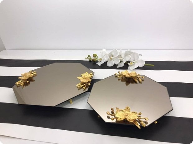 Güllü Petek Dizayn Siyah camlı Tepsi